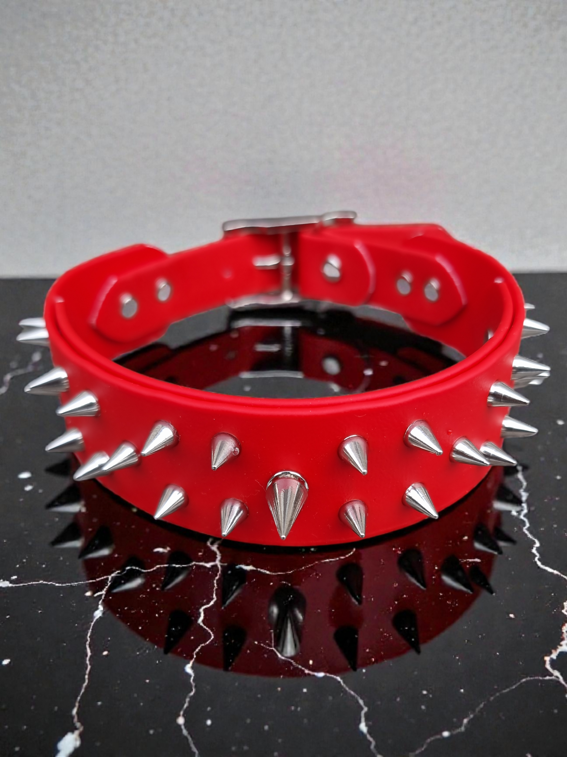 Cette largeur transforme le collier en véritable pièce centrale : elle attire le regard, affirme le rôle et renforce la sensation de maintien et de possession.