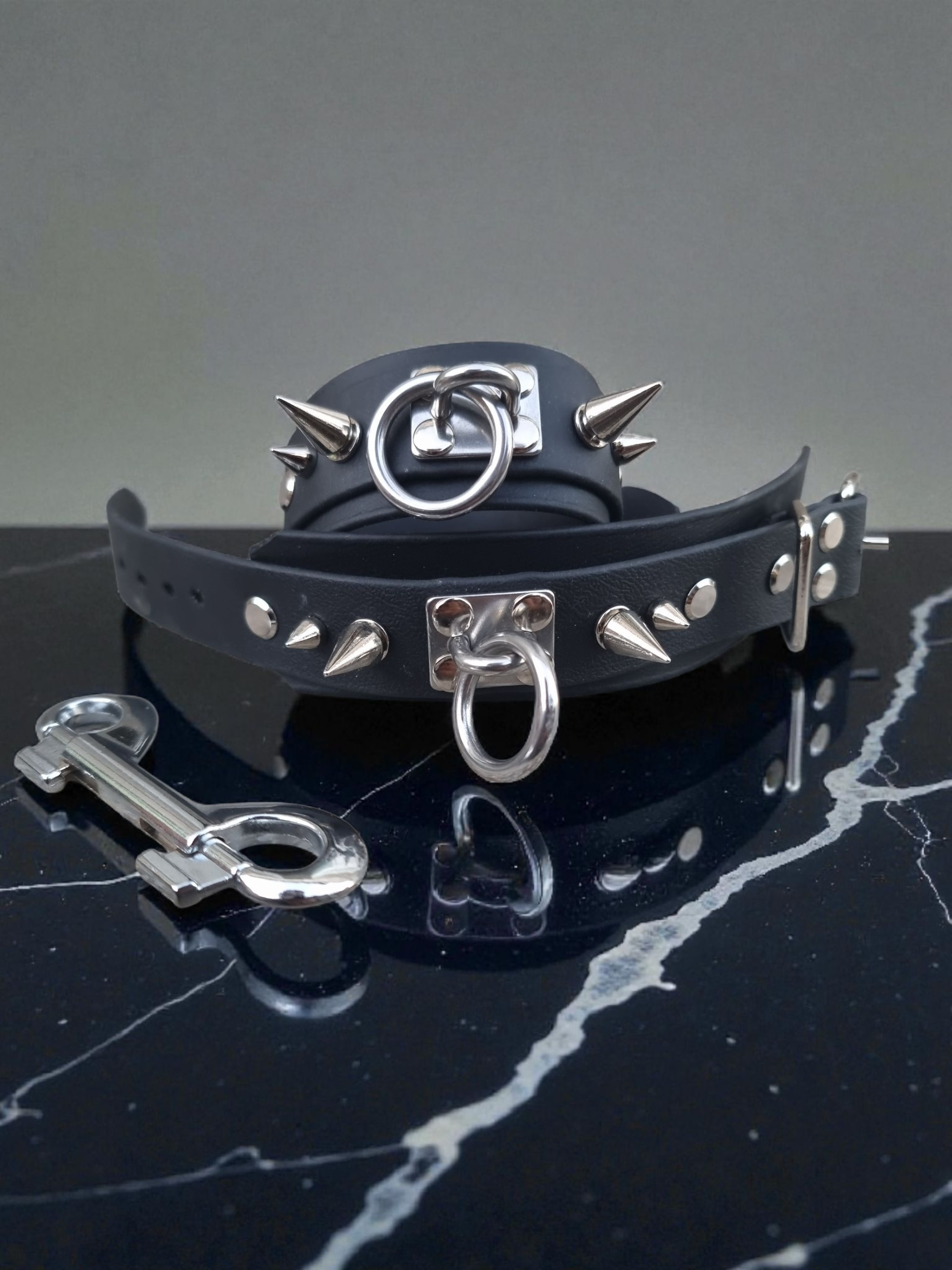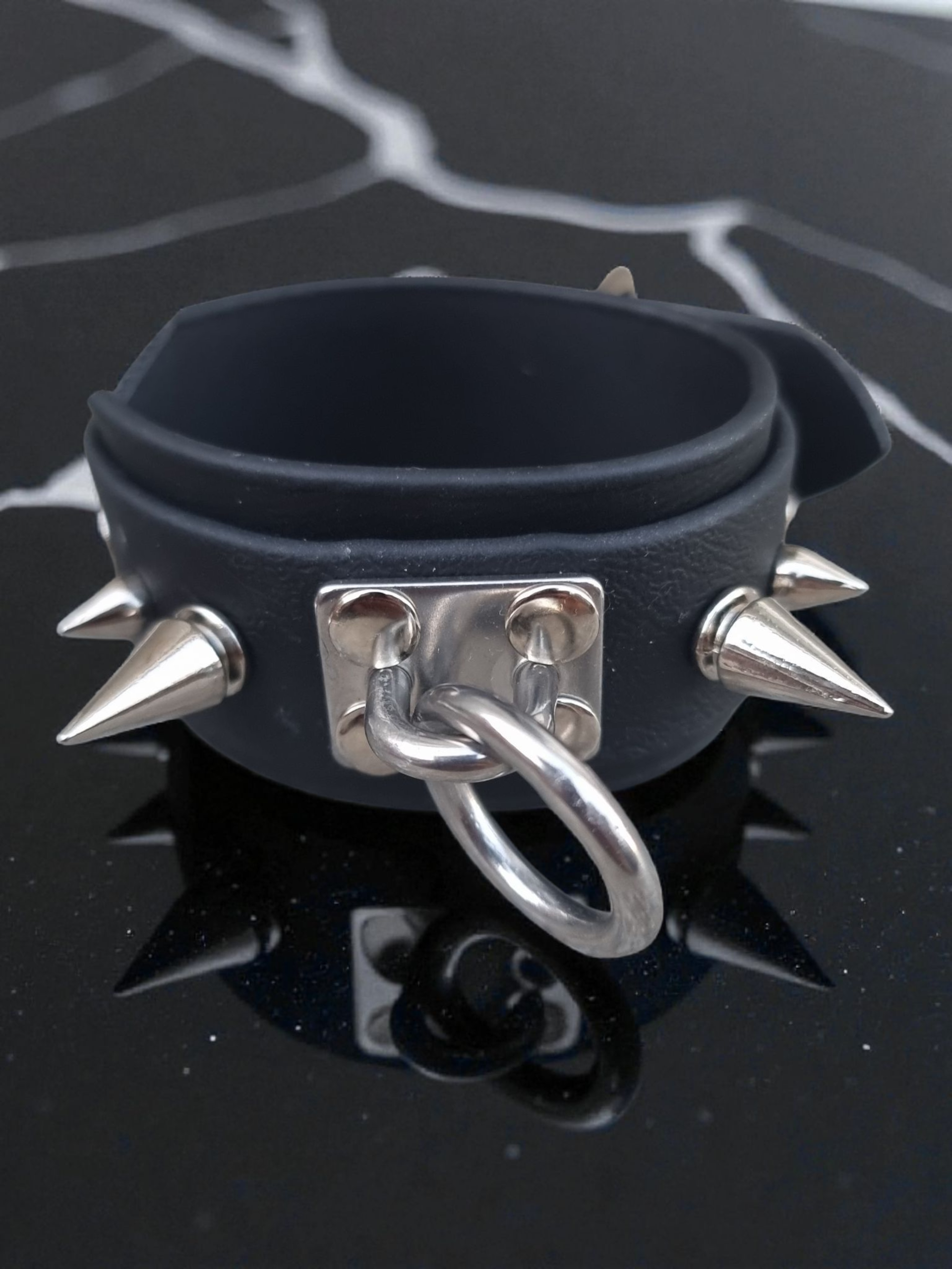 Au centre, un anneau ceint de pics — symbole de pouvoir et d’élégance brute.